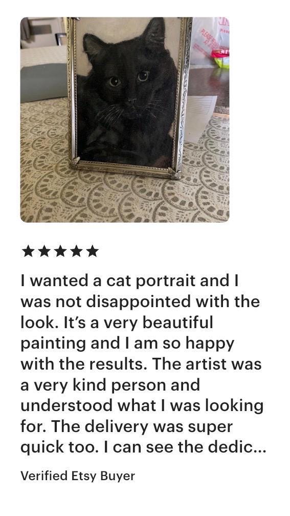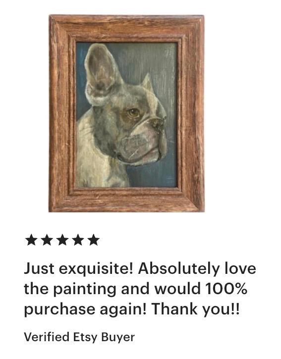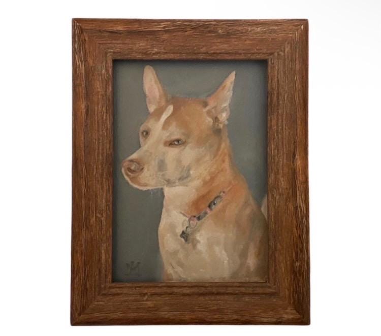 Custom Pet Oil Painting 5’7” Portrait on choice of canvas, fine Art paper, or wood board. Can be hung or posed. Processing time takes 1-6 weeks but if you have an urgency, please message me. After purchasing, you can send me your favorite pictures of your pet and I will send you options of frames that I think will work and discuss what your vision is. If sending multiple photos, please be prepared for me to choose one of them to paint. If there are issues with your photograph suitability, I will contact you and let you know. Only one pet per painting. True final style decisions rest with the artist. For more examples of my work see my Instagram @florafaunaartstudio